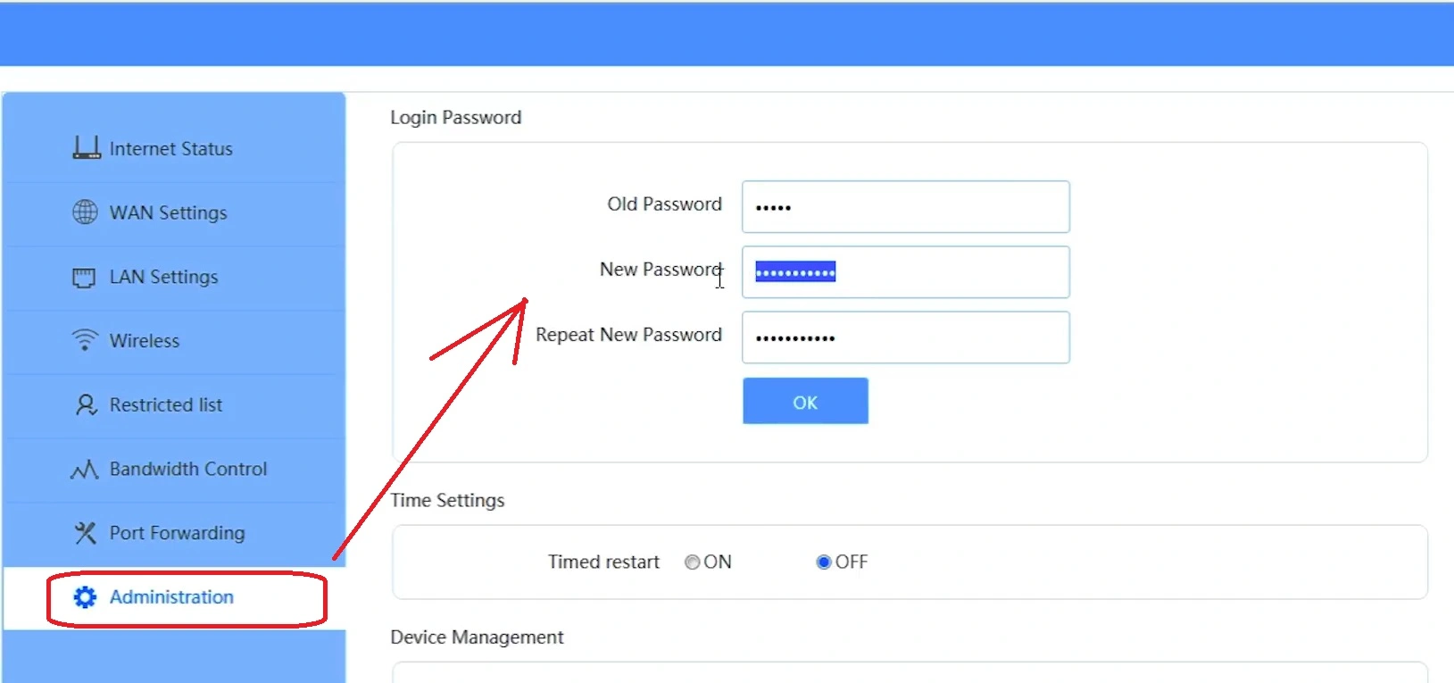 Press the OK button to save settings and keep remembering the new login password or keep it in safe place.