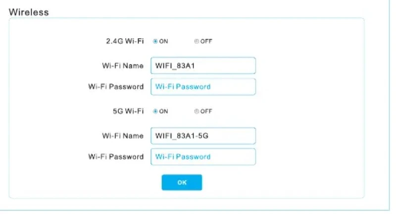 Press the OK button to save and apply settings and check new wifi name will show on your mobile and laptop WIFI. Connect the new wifi name with the security key you configured for your wifi network.
